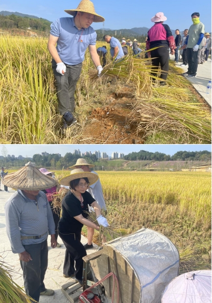 秋意漸寒,稻谷飄香。為深入貫徹習(xí)近平總書記關(guān)于實施鄉(xiāng)村振興戰(zhàn)略和糧食安全的重要論述,以學(xué)促干,推動學(xué)習(xí)貫徹習(xí)近平新時代中國特色社會主義思想主題教育見行見效,2023年117上午,市政集團黨支部組織全體黨員干部龍州濕地項目開展“傳承蘇區(qū)好作風(fēng) 四下基層促發(fā)展”主題黨日活動,全面助力稻谷收割工作。