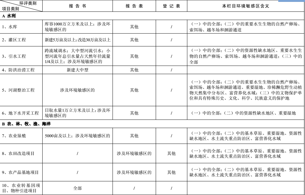 建設(shè)項(xiàng)目環(huán)境影響評價分類管理名錄