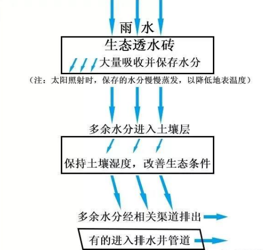 什么是海綿城市?簡言之,就是城市像海綿一樣有彈性,能吸水、蓄水、排水,實現(xiàn)水循環(huán)利用、有效防內(nèi)澇。鋪設生態(tài)透水磚,是除雨污分流改造外,我市海綿城市建設的一個重點和亮點。鋪有生態(tài)透水磚的人行道,看上去好像與鋪設普通磚的人行道沒什么兩樣,但仔細一看就會發(fā)現(xiàn)有所不同,生態(tài)透水磚表面布滿小孔,而普通磚表面比較光滑。這是因為生態(tài)透水磚以礦渣廢料、石屑、普通硅酸鹽水泥為主要原料,設計有一定孔隙率,經(jīng)高頻振動加壓而成,普通磚則主要用石粉廢渣、低標號水泥等制成。下雨時,生態(tài)透水磚能大量吸收并保存水分,達到飽和狀態(tài)后保存不了的多余水分則透過磚體進入土壤層,從土壤層出來后的多余水分最后經(jīng)相關(guān)渠道排出,有的通過排水井管道排出。而普通磚只能吸收少量水分,大部分水經(jīng)由地表流掉,易導致路面積水。