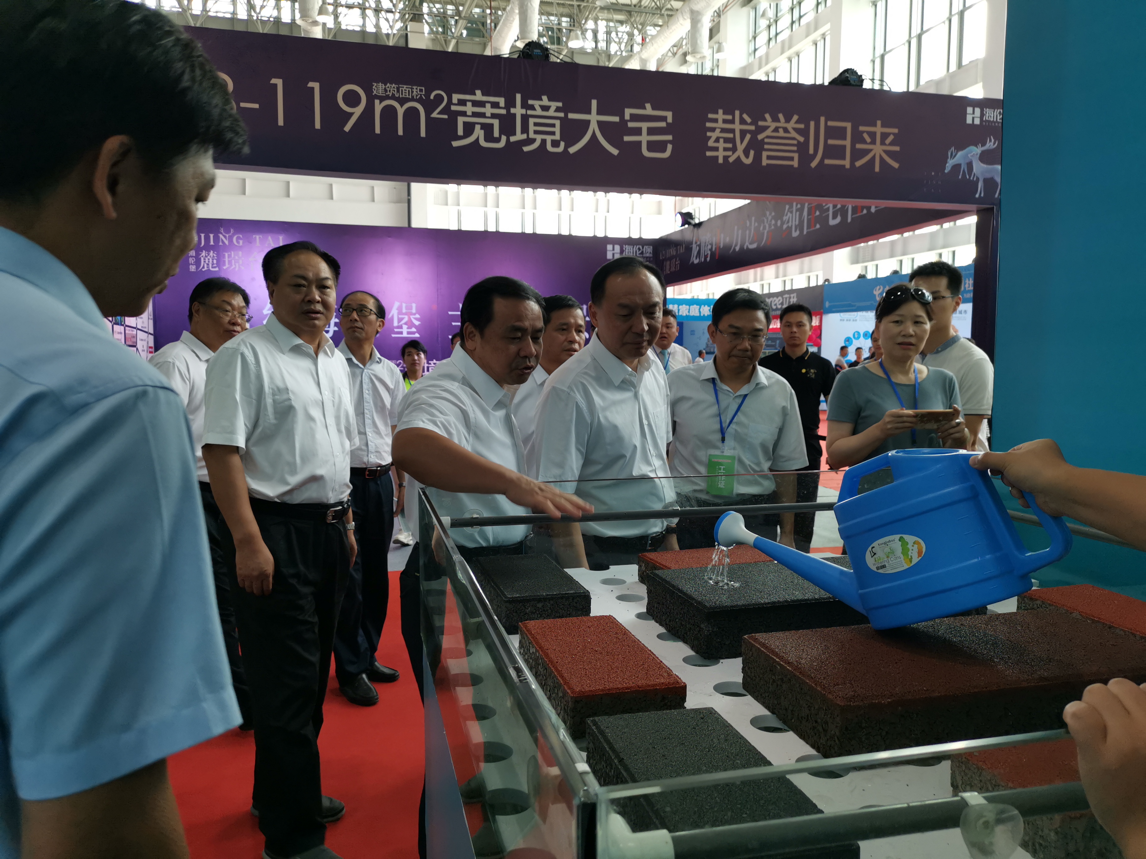 8月16日—18日,龍巖天潤(rùn)龍城新型建材有限公司參加龍巖市建筑產(chǎn)業(yè)發(fā)展大會(huì)建筑新型材料展,展會(huì)上公司發(fā)放了公司產(chǎn)品宣傳冊(cè),播放公司產(chǎn)品宣傳片,擺放公司產(chǎn)品樣品并在現(xiàn)場(chǎng)進(jìn)行透水效果演示,市委許維澤書(shū)記一行在巡視展館中饒有興致地觀看聽(tīng)取了公司產(chǎn)品性能情況介紹,對(duì)透水建材產(chǎn)品贊譽(yù)有加