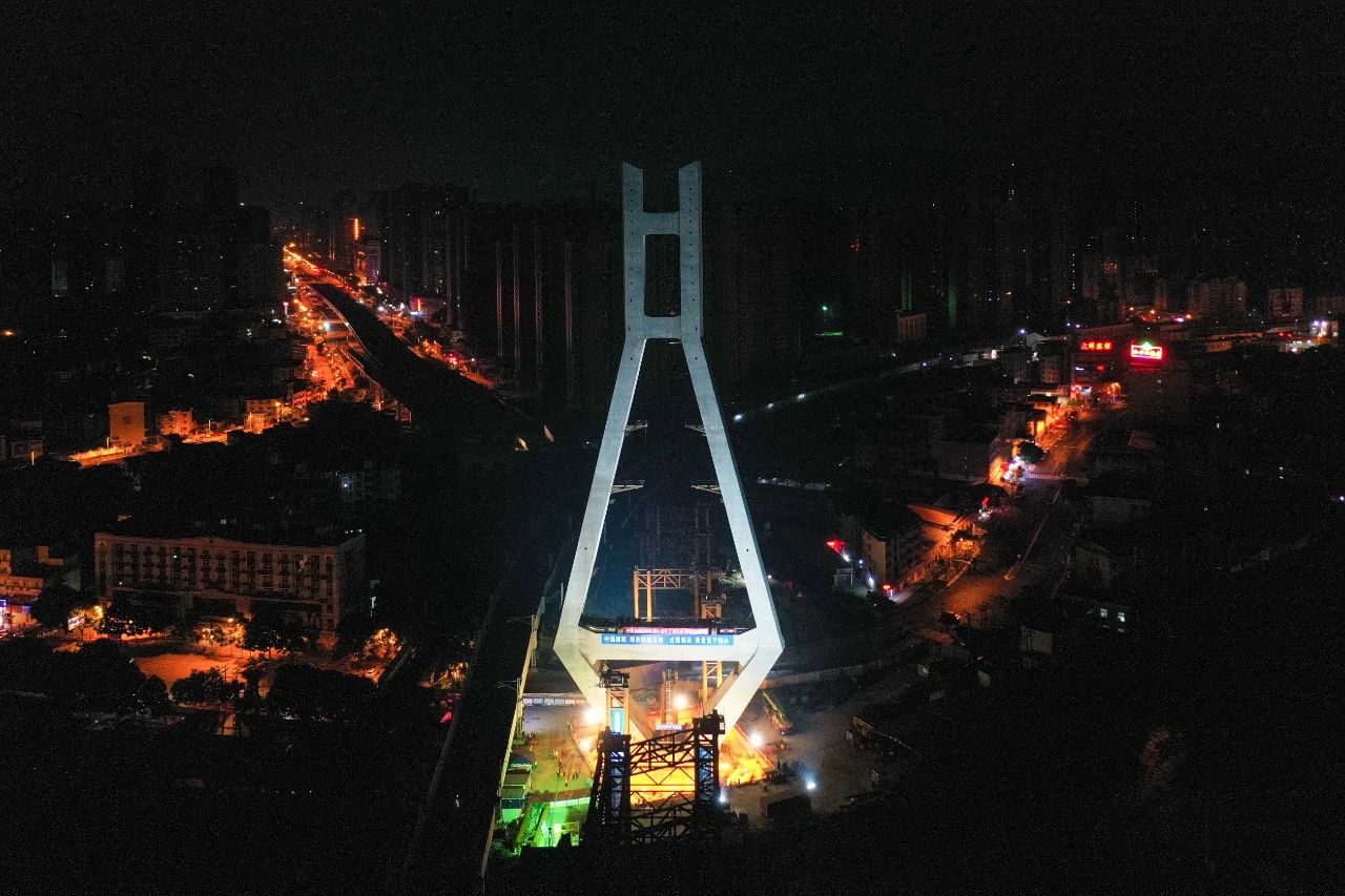 龍巖大橋主塔今日凌晨完成第一次轉體